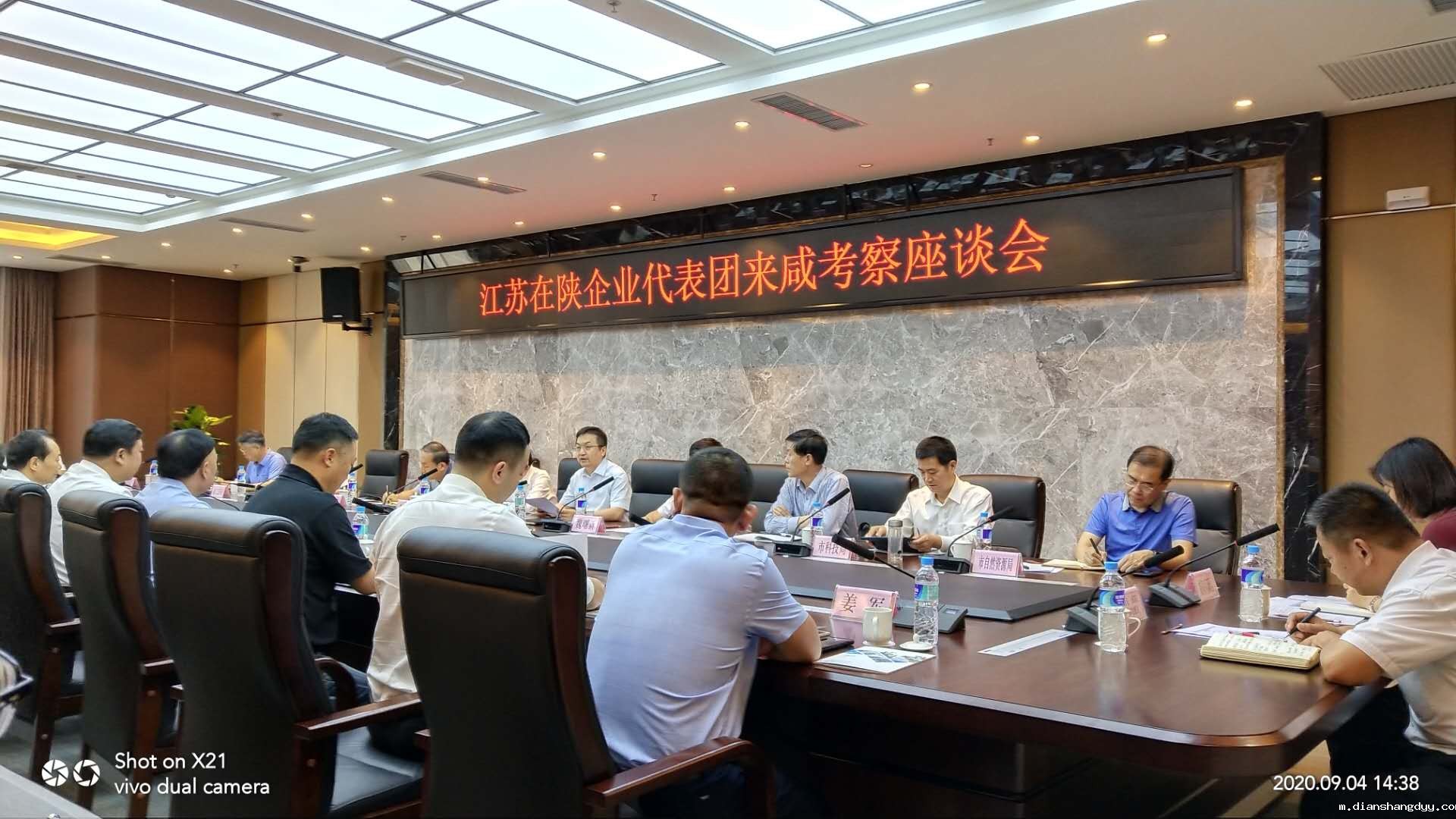 9月4日,应陕西省咸阳市委市政府邀请,江苏省人民政府驻西北办事处主任刘浩春率江苏在陕企业代表团赴咸阳考察交流。咸阳市委书记岳亮会见代表团一行。咸阳市委副书记陈波出席座谈会并讲话,市委常委、副市长王飞主持。必威安卓荣誉会长宋玉庆,党支部书记戴自力,常务副会长戴贵、杨恒杰,副监事长鲍小明,理事夏春祥,秘书长刘飞等参加考察。