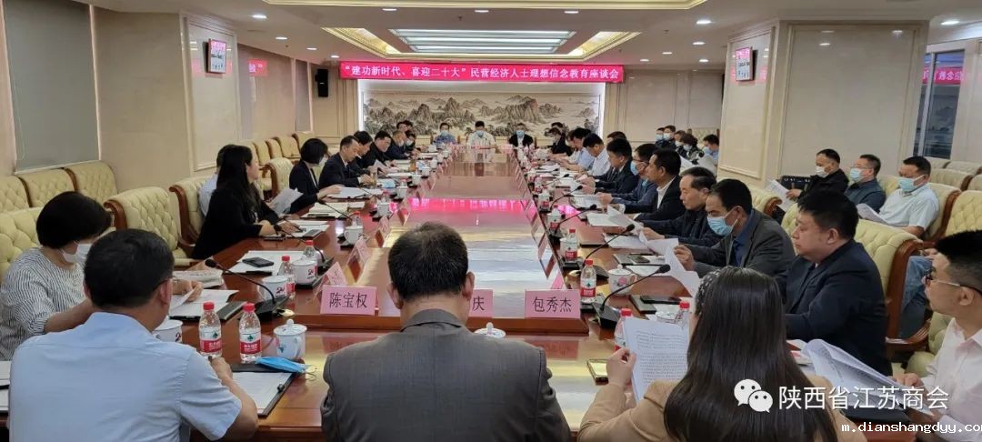 5月11日上午,省工商联召开“建功新时代、喜迎二十大”民营经济人士理想信念教育座谈会。省委统战部副部长、省工商联党组书记、常务副主席吴铁出席并讲话,省工商联一级巡视员、省总商会党委书记许孝军主持会议。陕西省江苏商会党支部书记戴贵参加会议,并作为商会党组织唯一代表,作大会发言。