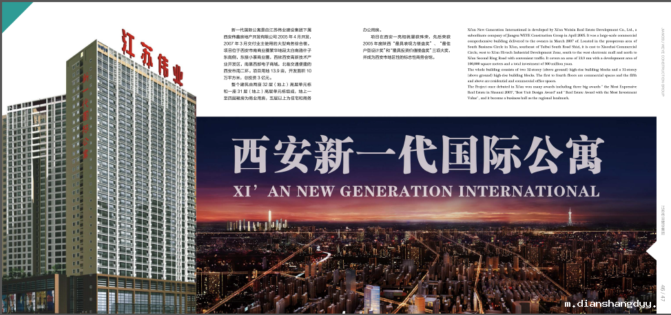 (1)新一代国际公寓,占地12亩,建筑面积10万平方米(于2005年开工,2007年3月竣工交房)。