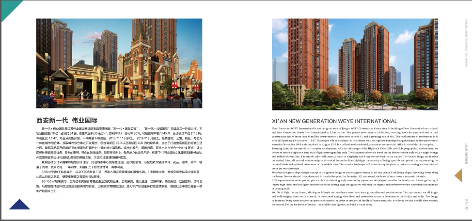 (2)新一代·北城国际项目,该项目占地23亩,建筑面积11万平方米,总投资3亿元(于2013年1月竣工交房)。
